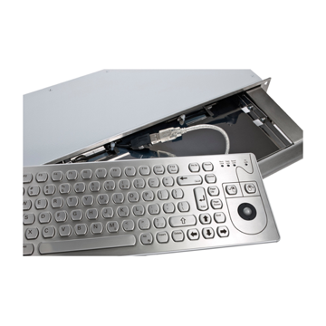| 3) So wird's industriekonform: KSS-19 Tastaturschublade (1HE) mit widerstandsfähiger Edelstahlblende und robuster PC Tastatur | |
